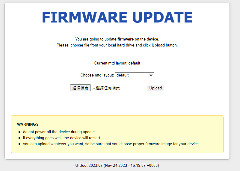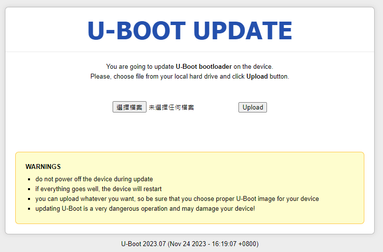 通常非必要都不需更新 Uboot 。但如果需要更新,一樣重啟按住 Reset 進入 Web Fail-Safe。