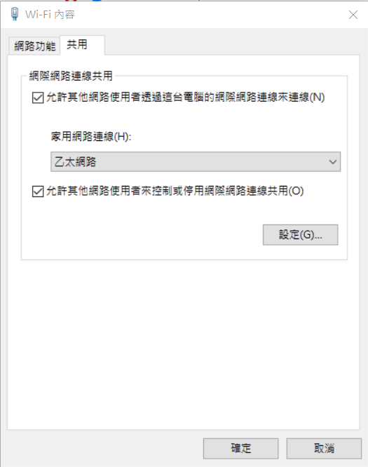 電腦中 Wi-Fi 網卡上右鍵開啟共用如下圖