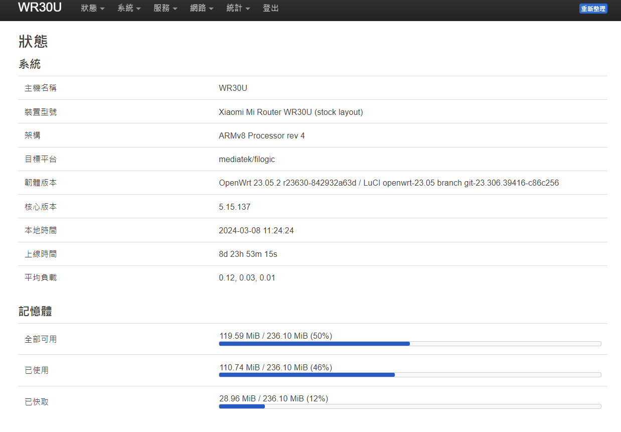 直接上淘寶找,發現還有一款 WR30U ,是中國聯通的小米訂製機。基本跟 AX3000T 相同,天線多一根和少了 NFC 功能(刷 OpenWrt 用不到),價格還能便宜 200 左右。也有官方 OpenWrt 支援,那改買這款省點錢。再順便買張 AX210 幫筆電升級一下。兩樣含運費才花了一千出頭,拿 AC86U 賣掉的錢來買還有剩😁。